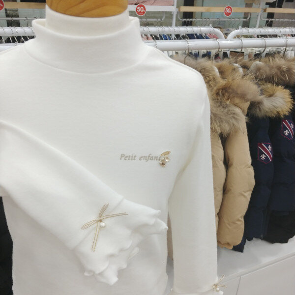 기본화이트 티셔츠입니다. 소매 리본프릴이 포인트에요~ 어디에든 레이어드 해서 입히시면 예뻐요~^^