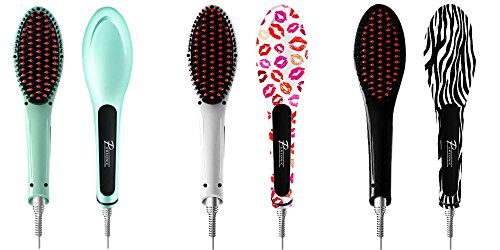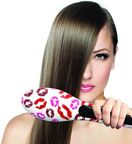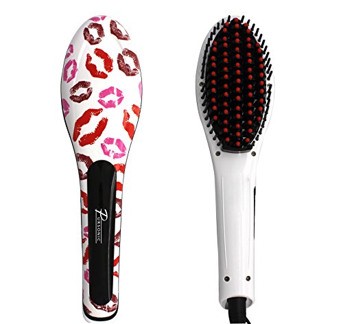 Pursonic HBS180 Instant Detangling LED Hair Straightener Brush - Best Ceramic, Anti Static, Electric Heating Detangling Hair Brush (Lips)