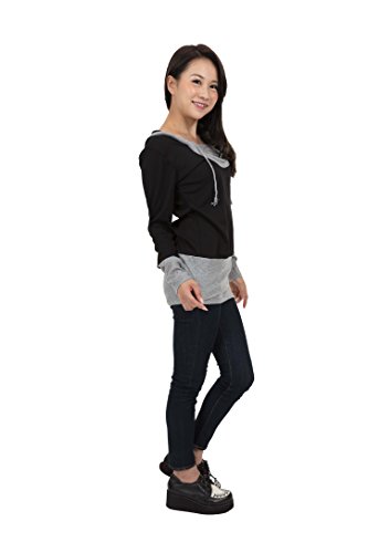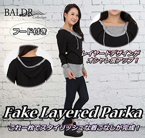 -. Title : BALDR(バルドル) 重ね着 風 フード 付き 長袖 シャツ レイヤード ロング トップス カットソー