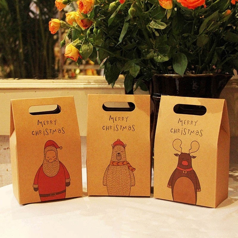 Three patterns foldable kraft paper tent bags. Ideal for packaging Christmas Holiday confections
