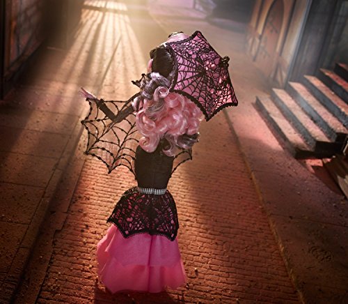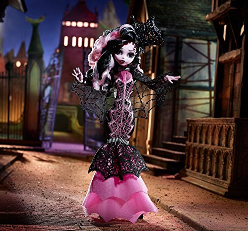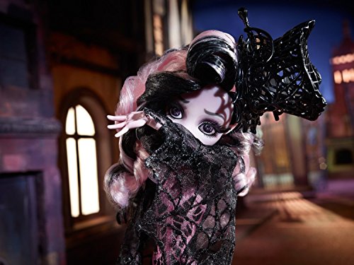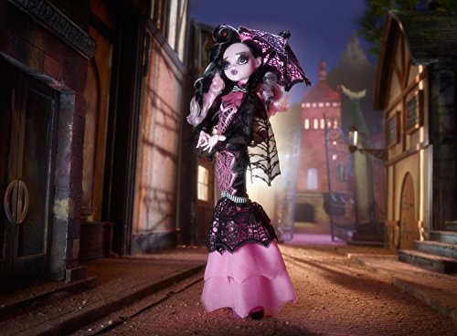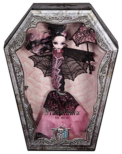 -. Binding : Toy -. Brand : Monster High -. Color : null -. EAN : 0887961089981 -. Feature : Draculaura is monster royalty, and she looks it in this luxe outfit that screams high fashion and monster ancestry / Her gore-geous mermaid dress has a black bodice adorned with pink embroidery and a pink and black chiffon ruffled skirt / A sheer black bat wing-inspired cape, black lace-like top hat and killer shoes add killer drama / Her embroidered pink and black umbrella can be opened or closed for a killer pose! / A longer torso and legs, rooted eyelashes and a glazed eye finish make this doll perfect for dynamic posing and monsterrific display -. IsAdultProduct : 0 -. ItemPartNumber : CHW66 -. Label : Mattel -. Manufacturer : Mattel -. Model : CHW66 -. MPN : CHW66 -. PackageQuantity : 1 -. PartNumber : CHW66 -. ProductGroup : Toy -. ProductTypeName : TOYS_AND_GAMES -. Publisher : Mattel -. Size : null -. Studio : Mattel -. Title : Monster High Draculaura Collector Doll (Amazon Exclusive) -. UPC : 887961089981 -. Warranty : 1 year warranty against manufacturer defects