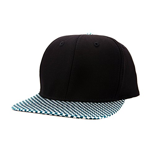 Title : Top Level Snapback Satin Checkered Print Brim Unisex Flatbill Hat - Black/Turquoise Blue