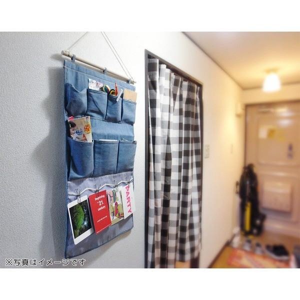 7個のポケットにはハサミやペンなど、4個のクリップにはハガキや写真、メモなどを飾ったり、挟んだりできます。 デニム素材とストライプ柄が、どんなお部屋にも合いやすいです。 |