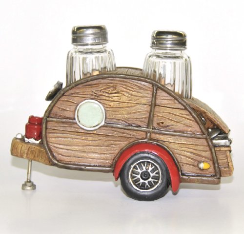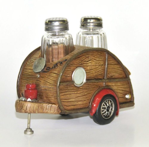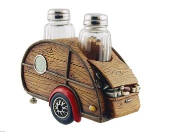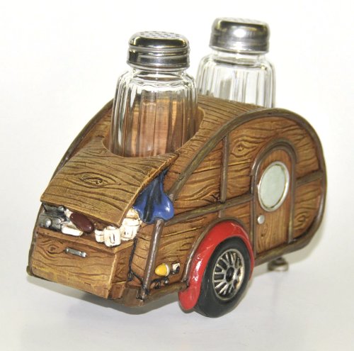 Salt & Pepper Set, Woody Teardrop RV Camper, 7-inch, Collectible Kitchen Decor
