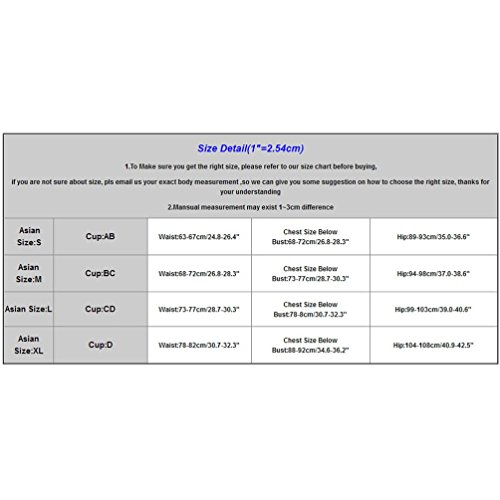 Asian Size:MCup:BCWaist:68-72cm/26.8-28.3"Chest Size Below?Bust:73-77cm/28.7-30.3"Hip:94-98cm/37.0-38.6"