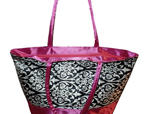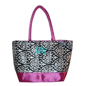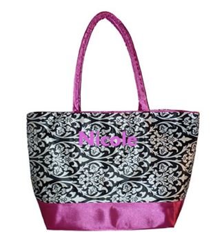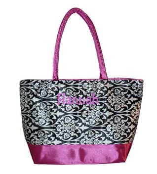-. Title : Custom Personalized Damask with Hot Pink Trim P.R.Int Canvas Shopping Tote Bag