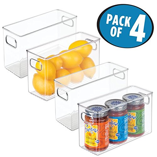 mDesign Refrigerator, Freezer, Pantry Cabinet Organizer Bins for Kitchen - Pack of 4, 10" x 4" x 6", Clear