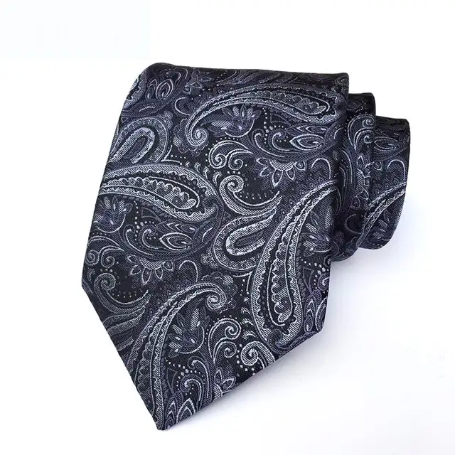 | [해외]높은 품질 페이즐리 그레이 블랙 남성 실크 넥타이 100% 자카드 직물 클래식 넥타이 Gravata Corbatas 웨딩 넥타이 |