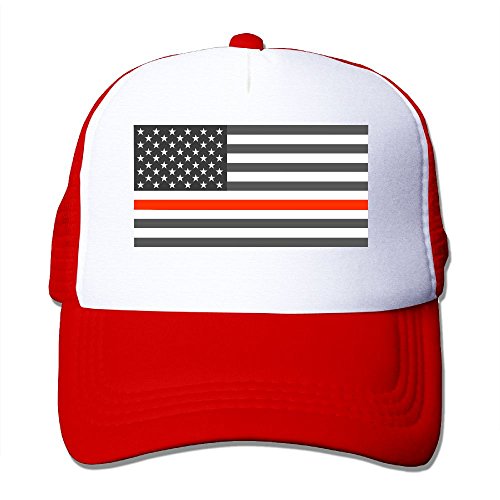 (Sherrygeoffrey)/Accessories/Hats/DIRECT FROM USA/Sherrygeoffrey Thin Red Line American Flag Adjustable Printing Snapback Mesh Hat Unisex Adult B...