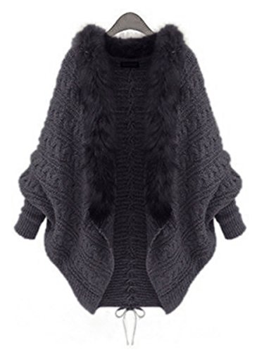 -. Title : KiniKiss レディース ロングニット 森ガール カーディガン バット袖 カジュアルセーター 毛皮付き ウールコート 暖かい 秋冬 コットン