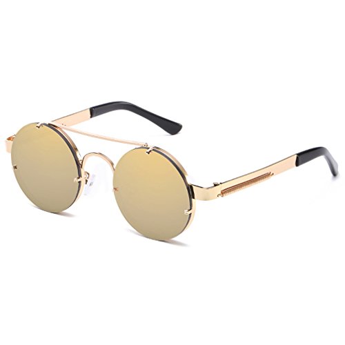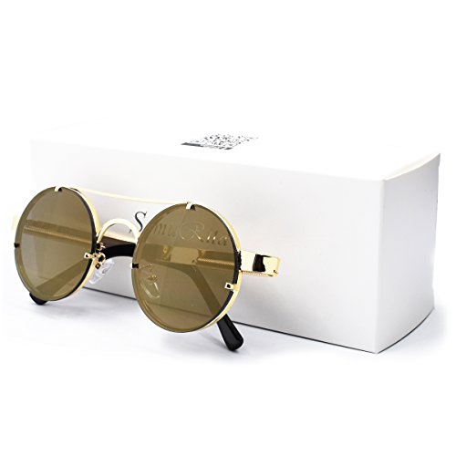 SamuRita Spring Temple Rimless Oversized Punk Round Sunglasses