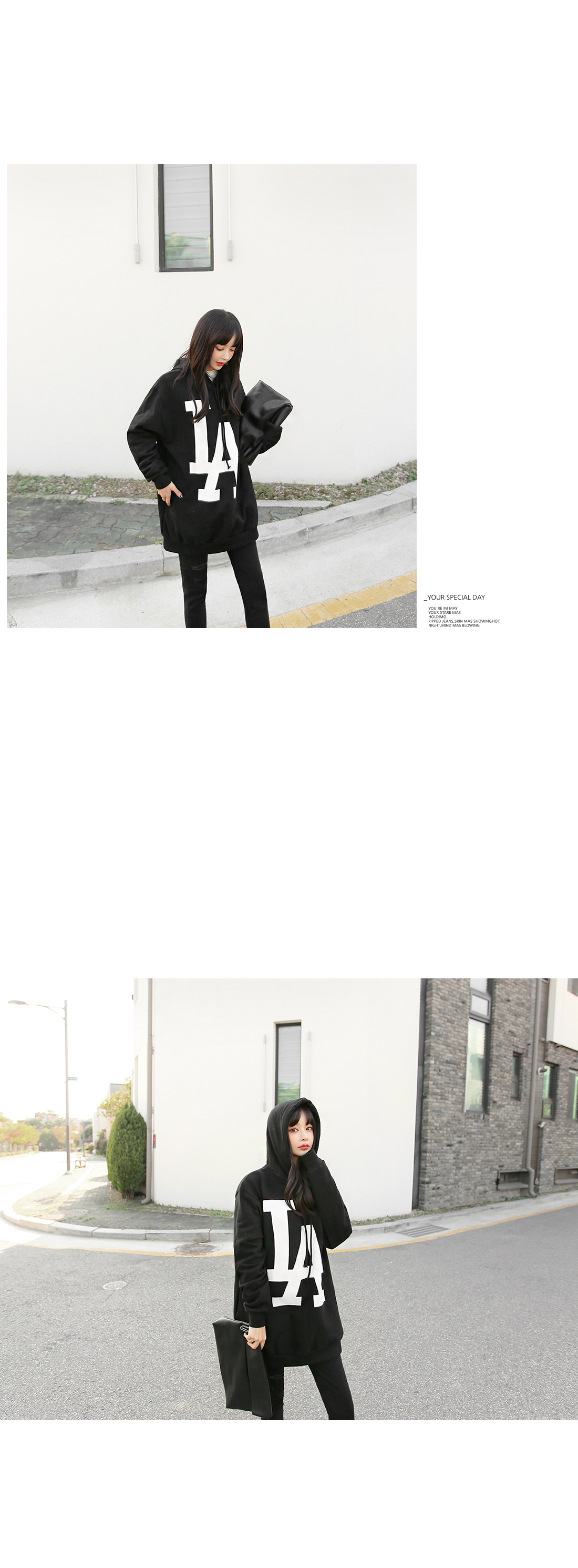 여유 있는 실루엣으로 편안하게 입기 좋은 후드에요.