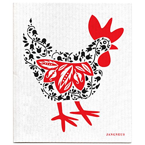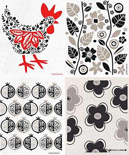 Swedish Dishcloth, Set of 4 (BH) BLACK Hen, Pomegranate, Leaves, Flowers