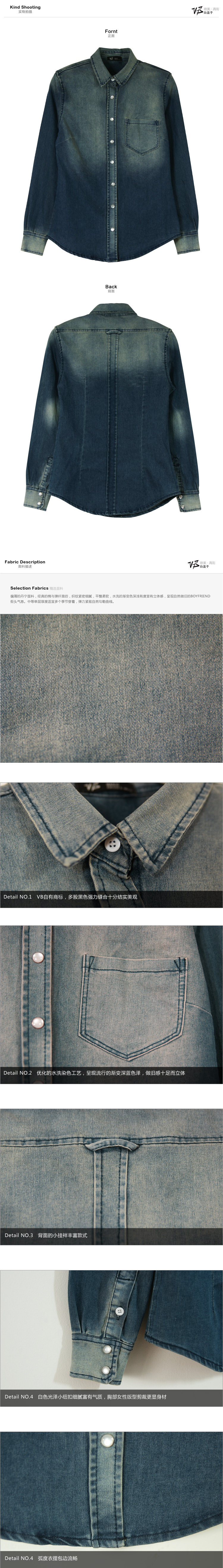 ![]() 长袖深蓝牛仔衬衫