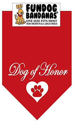 -. Binding : Misc. -. Brand : FunDog Bandanas -. Color : red -. EAN : 0083351936983 -. Feature : Cute! / Fun! / Affordable! / Makes a great gift! / 22x22x31inches -. Label : The Dog Perk Corporation -. Manufacturer : The Dog Perk Corporation -. MPN : Fun-6750 -. PackageQuantity : 1 -. PartNumber : Fun-6750 -. ProductGroup : Pet Products -. ProductTypeName : PET_SUPPLIES -. Publisher : The Dog Perk Corporation -. Size : One size fits most for medium to large dogs -. Studio : The Dog Perk Corporation -. Title : BANDANA - Dog of Honor for Medium to Large Dogs - red -. UPC : 083351936983