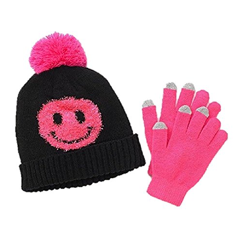 -. Title : Girls SO Smiley Face Knit Hat and Texting Gloves Set