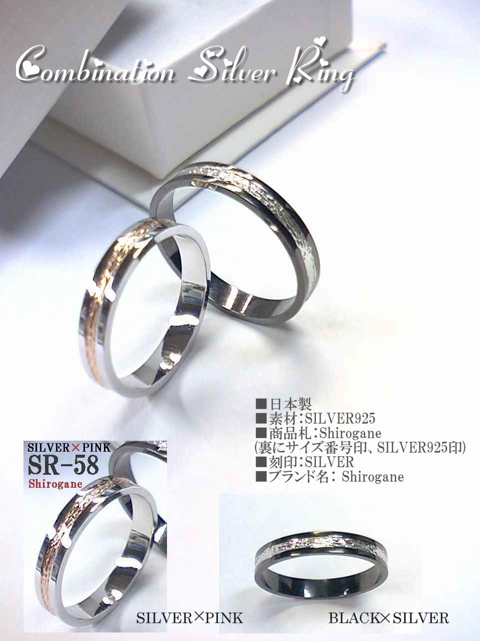 【日本製】SILVER925 コンビネーションシルバーリングSR-58シリーズ