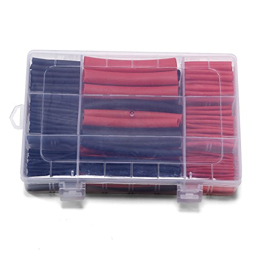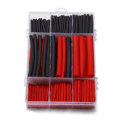 Ginsco 270Pcs 3:1 Shrink Ratio Dual Wall Adhesive Lined Heat Shrink Tubing Tube 6 Size 2 Color KIT Black Red