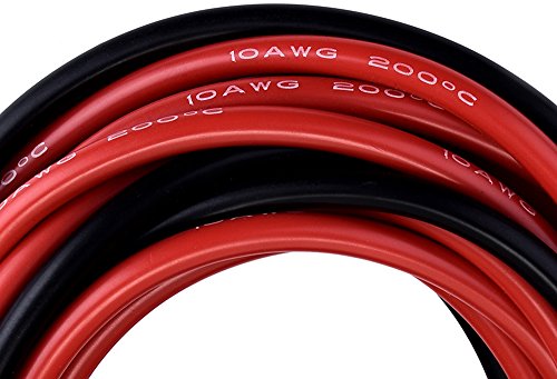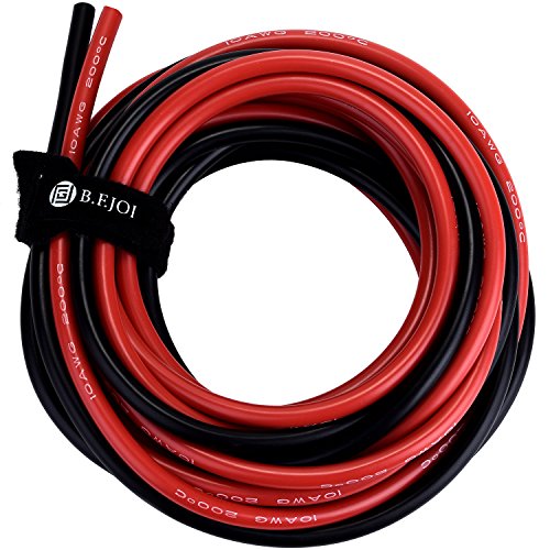 About B.F.JOI 10 Gauge Silicone Wire: - Ultra Flexible, Low Resistance, Strand Wire,High Performance Pure Silicone Wire - High-quality tinned copper inner core, can maintained copper wire for a long time does not oxidize . - Scope: Applicable to all kinds of electrical and electronic, industrial electronics, model aircraft, Cars, ship model, batteries, motors and other links insulation. Specification: - Color: Black Red - Material: Conductor - tinned copper - Insulator: Silicone - Wire number: 10AWG - Total length: 10 feet Black And 10 feet Red - Number of shares : 1050 - diameter: 0.003in - Wire diameter: 0.12in - Sheath outer diameter: 0.22in - Insulation Thickness: 0.05in - Conductor resistance: 6.3 ohm one thousand meters - Rated voltage: 600V - Temperature range: -60 ~ 200 - Outer diameter tolerance: 0.005in Package includes: - 1x 10 Feet Copper Cables in Red - 1x 10 Feet Copper Cables in Black Note:Light shooting and different displays may cause the color of the item in the picture a little different from the real thing. The measurement allowed error is /-0.4-1.2in. 0