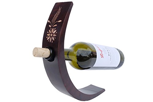 Design by UnseenThailand Wood Wine Bottle Holder - Balances Wine in the Air. (Flower1)