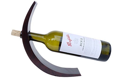BALANCES WINE BOTTLE IN MID-AIR. This tabletop wine stand is designed to hold a single standard 750ml wine bottle horizontally. Functions like your regular wine rack except for 1 wine bottle on the dining table. Wine bottle will be held such that it looks like it is floating in the air without much support. It uses the weight of the wine bottle to balance itself. A great dining table center piece for any modern home decor.
