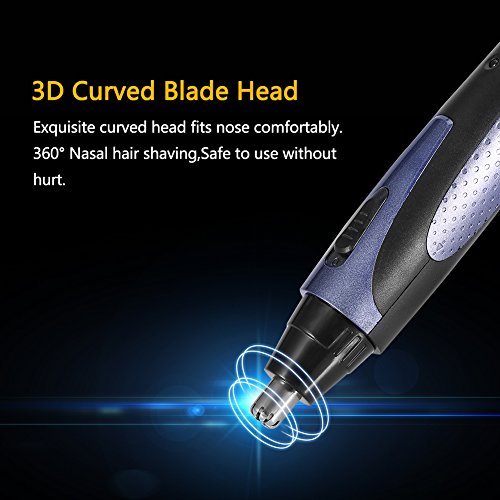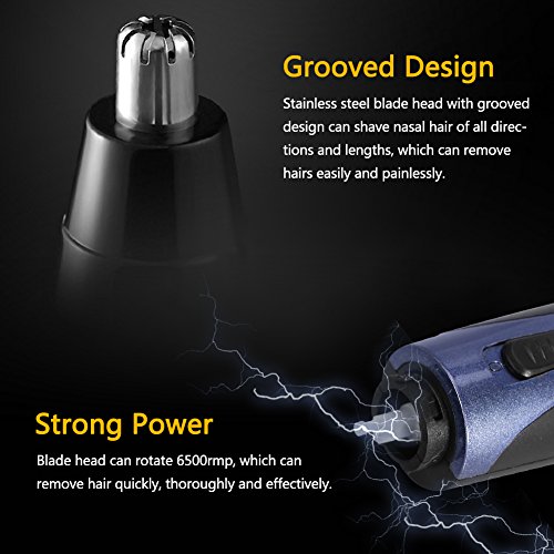 - BLADE HEAD WITH GROOVED DESIGN: stainless steel material,can shave nasal hair of all directions and lengths, which can remove hair quickly, thoroughly and effectively