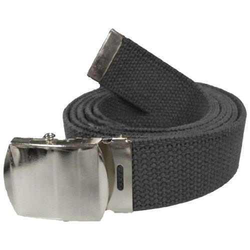 Product Description Army Color 100% Cotton Military Web Belt - Made From 100% Cotton Material. Width: 1.25" (Inches). Buckles Made From Metal In Either Gold/Brass or Silver/Chrome. All buckles come with a matching belt tip. Length is 54" Inches Long. Unisex. Size: 1.25" Wide (54" Long). Great for men, women or even kids! Great for any uniform or for casual clothes wear & recreation. Has a plastic protective pull off cover on buckle - then it's ready to wear. The slider buckle can be removed to adjust the length of the belt by either sliding the belt through, or simply cutting to make smaller. Easily adjusts to fit anyone perfectly. Rugged and Durable. Built to Last for a long time. Choose from: Red w/Gold Buckle, Olive w/Gold Buckle, Navy Blue w/Gold Buckle, Black w/Silver Buckle, Khaki w/Silver Buckle, Olive w/Silver Buckle, White w/Gold Buckle, White w/Silver Buckle, Grey w/Silver Buckle, Purple w/Silver Buckle, Tan w/Gold Buckle, Navy Blue w/Silver Buckle, Black w/Gold Buckle.Feature
