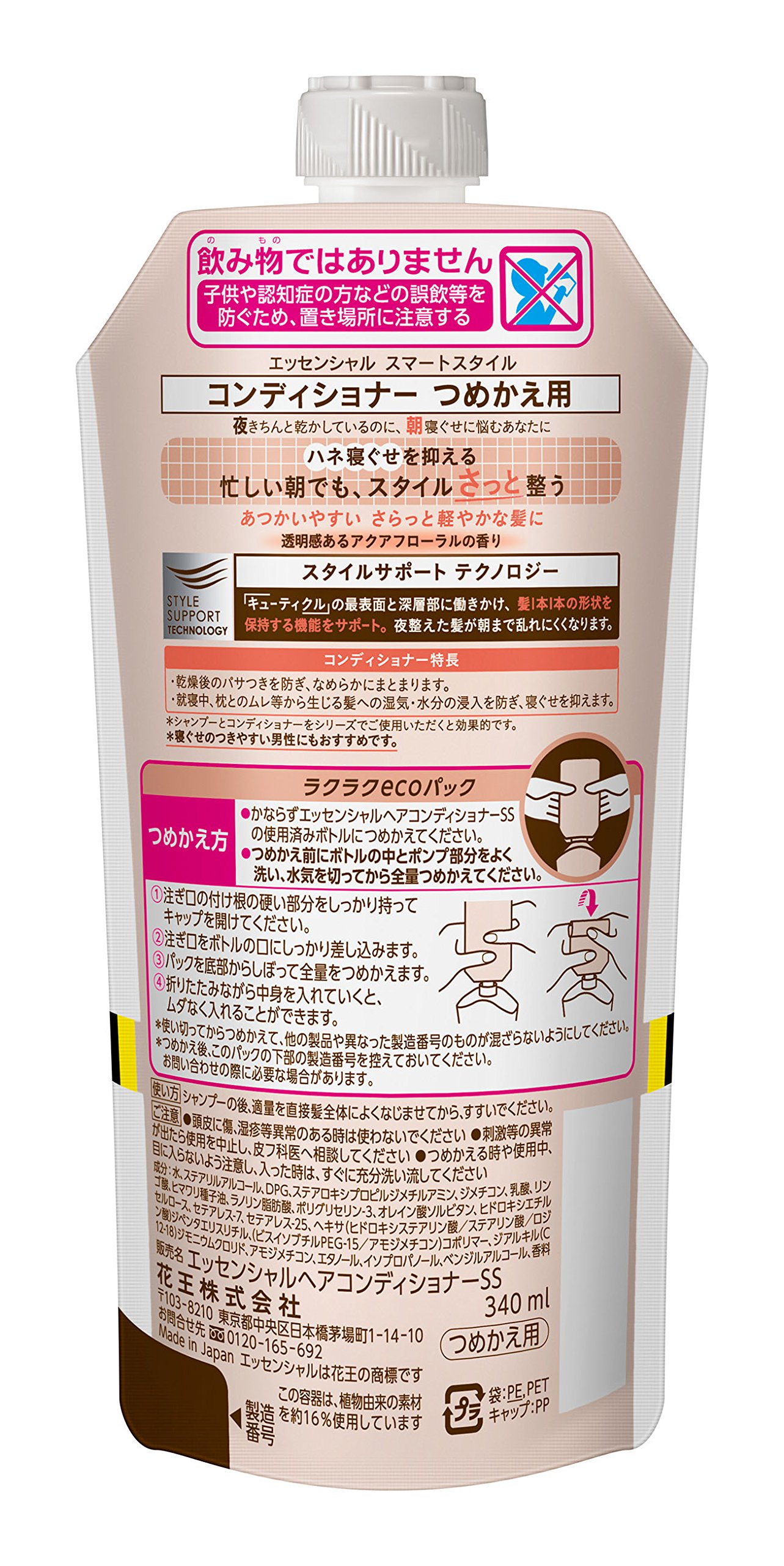 Adopted "style support technology" which supports cuticle function which keeps shape of each hair by working on the top surface and deep part of the cuticle.