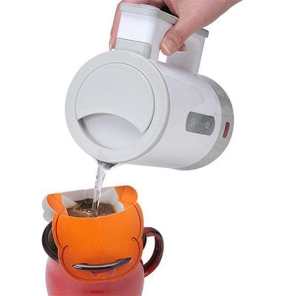 | 大容量の500mlながら、本体重量460gと軽量で、極限までスリムにした持ち運びに最適な軽量電気ケトルです。ケーブルは取っ手にクルクル巻きつけて、プラグを隙間に押し込めば、スッキリ収納できます。日本国内でも海外でも便利に使える電圧切替式。ハイパワー仕様で使いたい時に使いたい分だけのお湯がすぐ沸かせます。空焚き防止機能と沸騰・転倒時自動電源OFF機能を搭載しているので、万が一の時でも安心です。 |