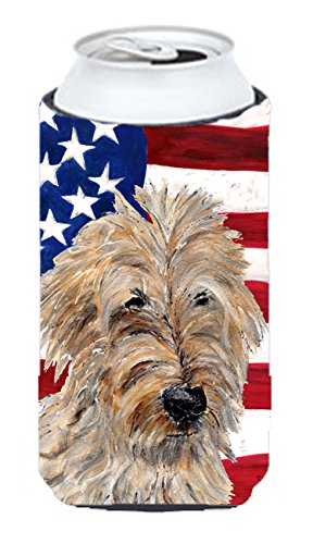 Golden Doodle 2 with American Flag USA Tall Boy Beverage Insulator Hugger SC9643TBC