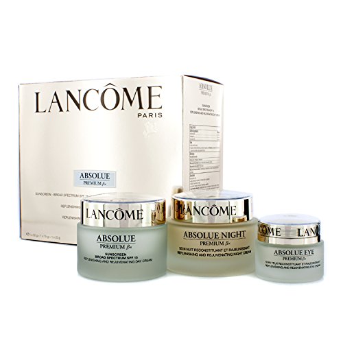 Studio : Lancome ReleaseDate : 2014-05-30 Publisher : Lancome Binding : Health and Beauty Product Description Absolute premium bx replenishing and rejuvenating day-night and eyes ritual set by lancome for unisex 3 pc set 1.7 oz absolute premium bx sunscreen broad spectrum spf 15 replenishing and rejuvenating day cream, 2.6 oz absolute night premium bx replenishing and rejuvenating night cream, 0.7 oz absolute eye premium bx replenishing and rejuvenating eye cream. 0