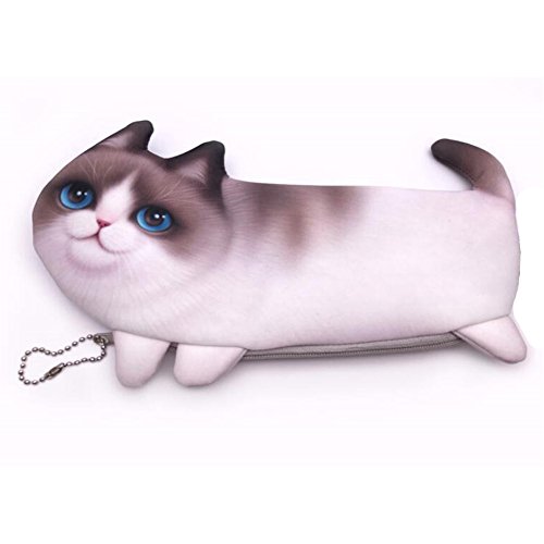 HOYOFO 3D Cat Makeup Bag Pencil Case Cartoon Coin Purse Multi-functional Cute Zipper Pouch, Tawny