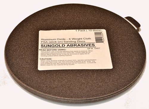 Sungold Abrasives 339047 50 Grit 9-Inch X-Weight Cloth Premium Industrial Aluminum Oxide PSA Stick-On Sanding Discs For Stationary Sanders, 5 Sanding Discs/Pack