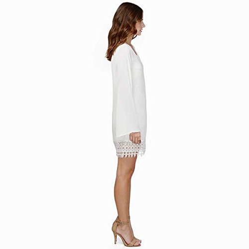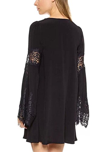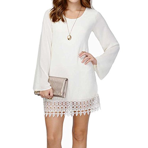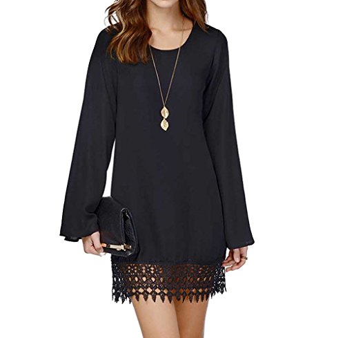 -. Title : Lowestbest Women's Long Sleeve Chiffon A-line Lace Stitching Trim Mini Dress