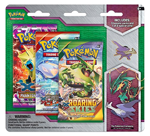 -. Feature : Contains 1 collectible Pin / Contains 3 Pokemon TCG booster packs / Collectible Pin will be, at random, either Mega Rayquaza or Mega Latios