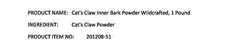 Product Description1 lb of wildcrafted Cat's Claw Inner Bark Powder, packaged in a resealable mylar bag.0