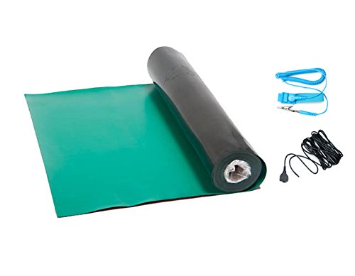 Bertech Rubber ESD Soldering Mat Kit with a Wrist Strap and Grounding Cord, 2' Wide x 4' Long, Green