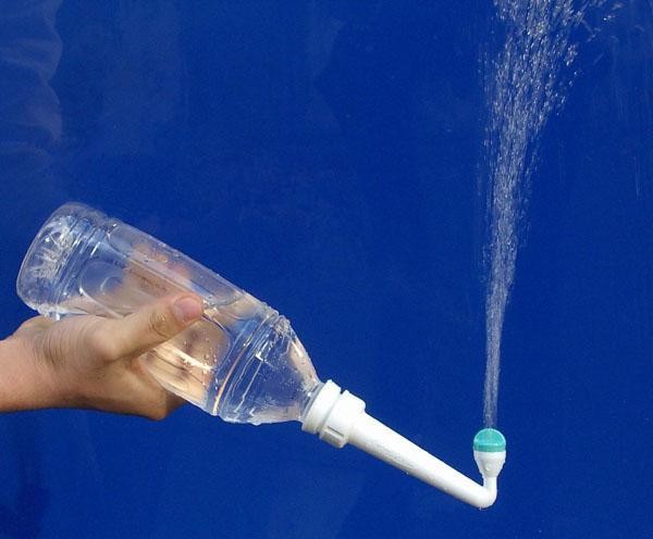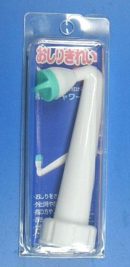 | 携帯シャワー・ファルウオッシュ・ミニは、簡易式携帯おしり洗浄器です。ファルウオッシュ・ミニを市販ペットボトルに取り付け逆さまにして、ボトルを握ることにより水が出ます。ボトルの握り具合により水流・水量が調整できます。 |