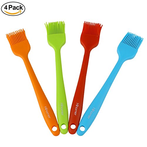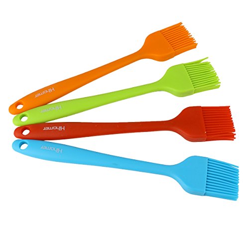 Hihamer Set of 4 Silicone Basting Pastry & BBQ Brushes - 8.2 Inch Long - Red, Blue, Orange, Green