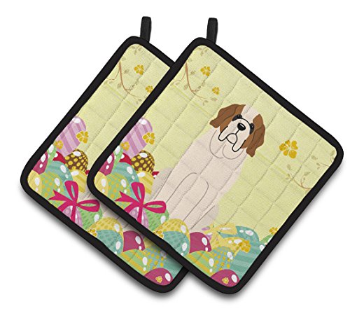 Caroline's Treasures Easter Eggs Saint Bernard Pair of Pot Holders, 7.5HX7.5W, Multicolor