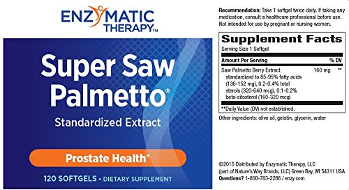 ReleaseDate : 2015-06-22 Studio : Enzymatic Therapy Publisher : Enzymatic Therapy Binding : Health and Beauty Product Description Super Saw Palmetto 120 Softgel - Supports healthy prostate function