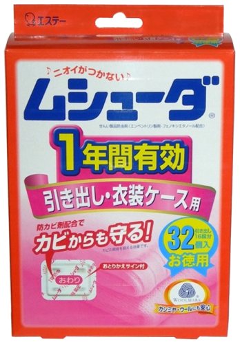 "Musuda 1 year insect pull-out / for 32 clothes cases" is an insect repellent that lasts for 1 year with insecticidal effect and is long-term storage for clothing.