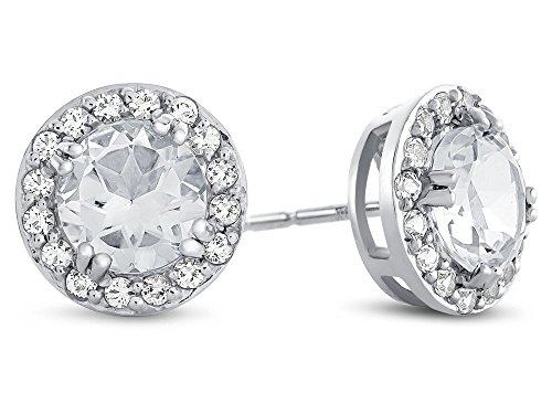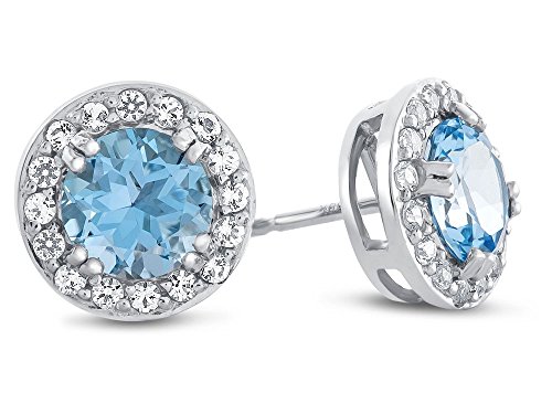 This stunning 14k White Gold 6mm Round Swiss Blue Topaz with White Topaz accent stones Halo Earrings, crafted in 14 kt White Gold . This attractive design is set with 2 stones prong set light blue Round Swiss Blue Topaz eye clean clarity, 16 stones prong set colorless Round White Topaz eye clean clarity. This product measures 9.00 mm wide, 9.00 mm long.Warranty: - This item is covered by our exclusive Silver Shield Lifetime Warranty. This exclusive lifetime coverage is offered ONLY by Finejewelers so please shop with confidence, our quality is guaranteed for life!Feature