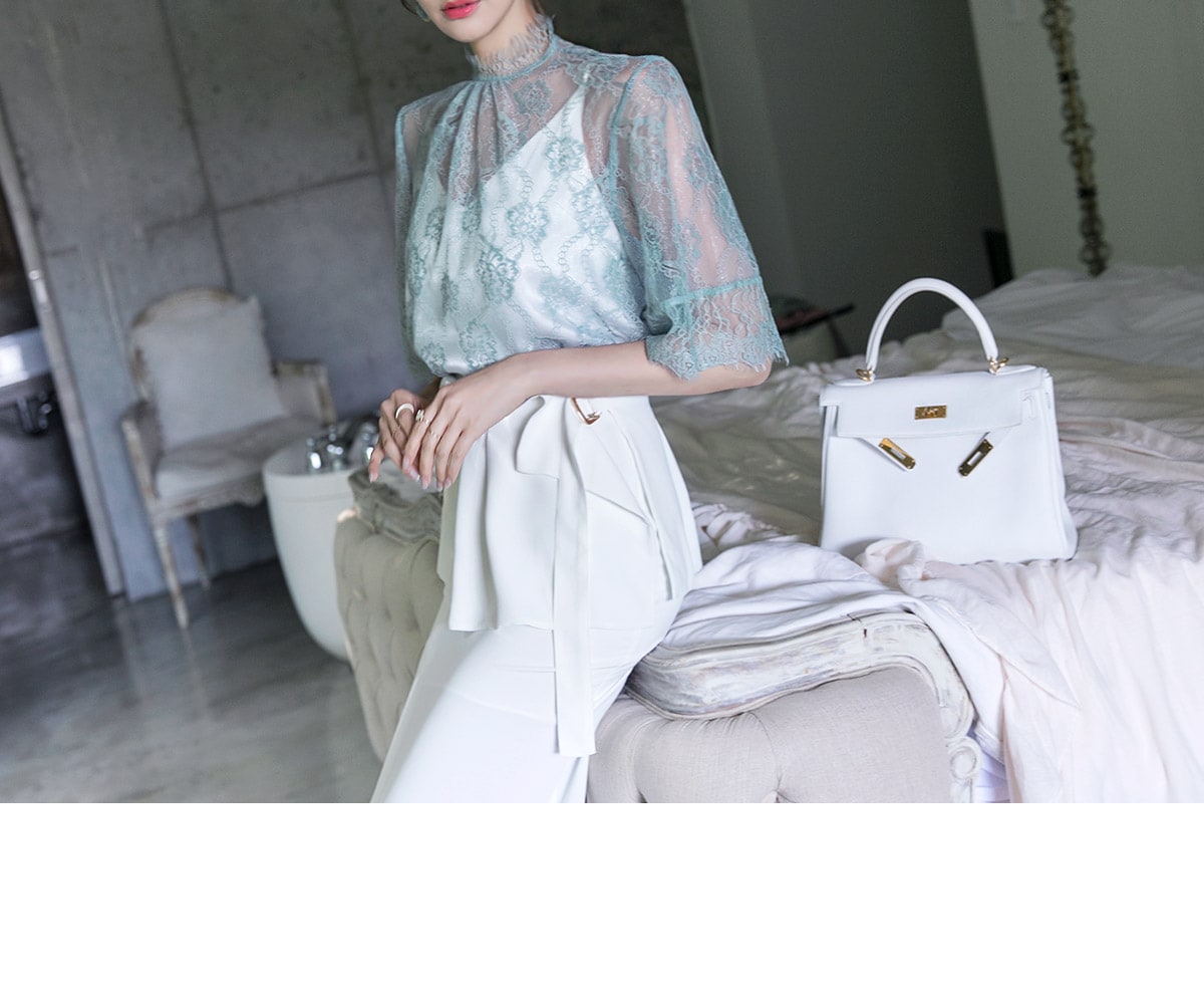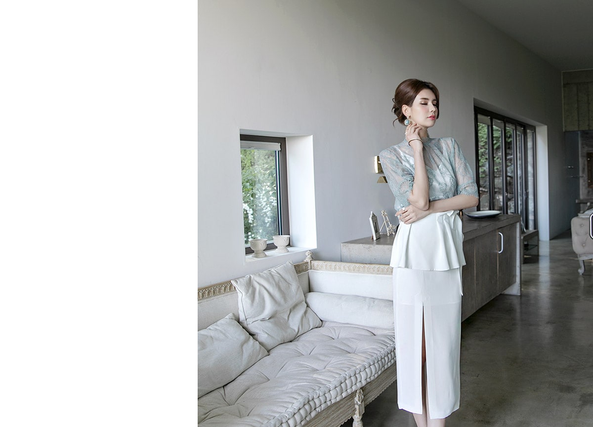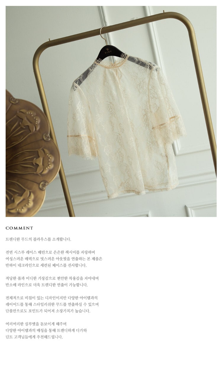 B2224 스크릿 레이스 시스루 블라우스 Sora