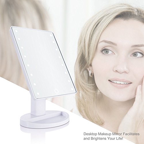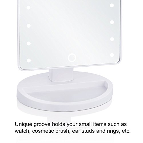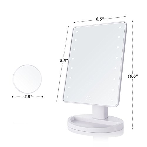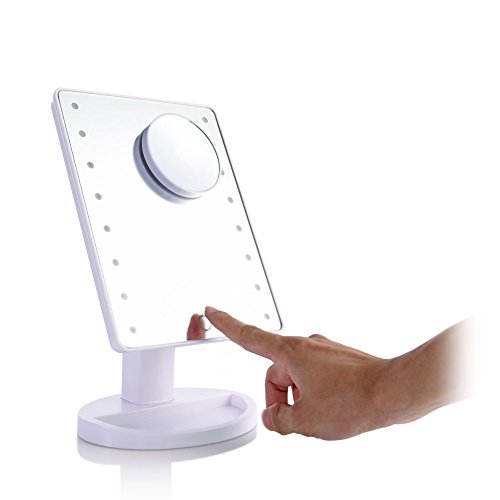 Richwealth LED Cosmetic Mirror, With Touch Screen 16 LEDs Square Desktop Cosmetic Mirror with Removable10x Magnifying Mirrors Adjustable Brightness (White) RW-Mi04