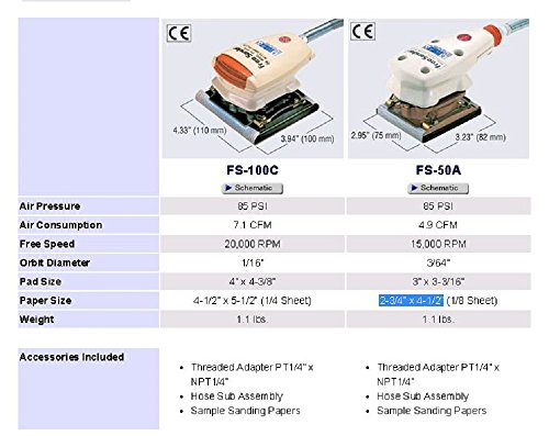 Nitto Kohki FS-100C Free Sander, 15,000 RPM, 3/64" Orbit Diameter, 3" x 3-3/16" Pad, 2-3/4" x 4-1/2" Paper Size
