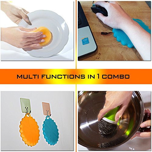 - GREAT WELCOME GIFT FOR YOUR NEW NEIGHBORS: Quality assurance, tensile deformation without fracture; You can use this silicon brush for dishwashing, scrubbing pot or pan, washing fruits and vegetables, and even you can be used to take a shower and wash your face, it will be a perfect heat kitchen mat or glove when in need.
