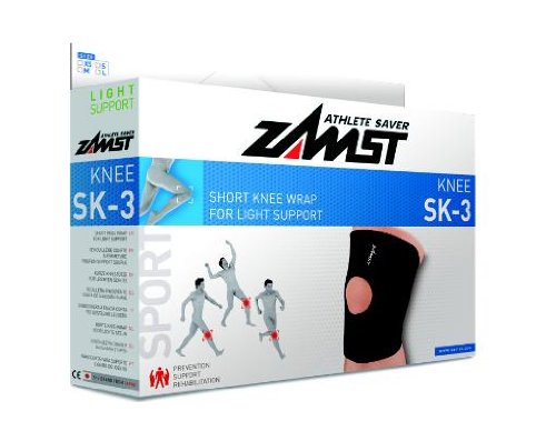-. Binding : Sports -. Brand : Zamst -. Department : unisex-adult -. Feature : Provides light knee support for general knee discomfort / Flyweight Tech advanced material fabrication with lightweight construction / i-Fit open panel design with adjustable fasteners provides individualized fit, enhanced comfort and variable compression levels / ROM-Tech pre-curved design to provide full Range of Motion for maximized performance levels / V-Tech ventilated flow through design quickly removes perspiration and keeps you cool while in motion -. IsAutographed : 0 -. IsMemorabilia : 0 -. Label : ZAMST -. Manufacturer : ZAMST -. ProductGroup : Sports -. ProductTypeName : SPORTING_GOODS -. Publisher : ZAMST -. Size : One Size -. Studio : ZAMST -. Title : Zamst SK-3 Knee Brace, Black, Small