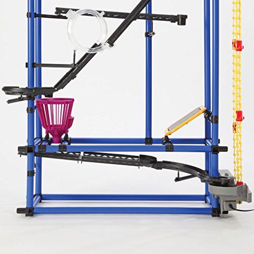 The new Chaos motor driven chain lifts a ball to the top of your construction and off it goes through whatever course(s) you have set up. It is really educational physics, and we guarantee hours of creative fun with this top quality, attractively packaged kit.
