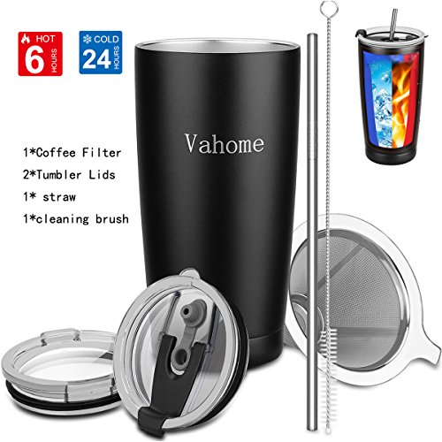 ●Saving your money Pay for one time, you will get get 6 pieces set You only pay for one time and you will get a high quality 1*Vahome travel mug, 1*Coffee Filter, 2*Tumbler Lids, 1*stainless steel straw, 1*stainless steel straw cleaning brush